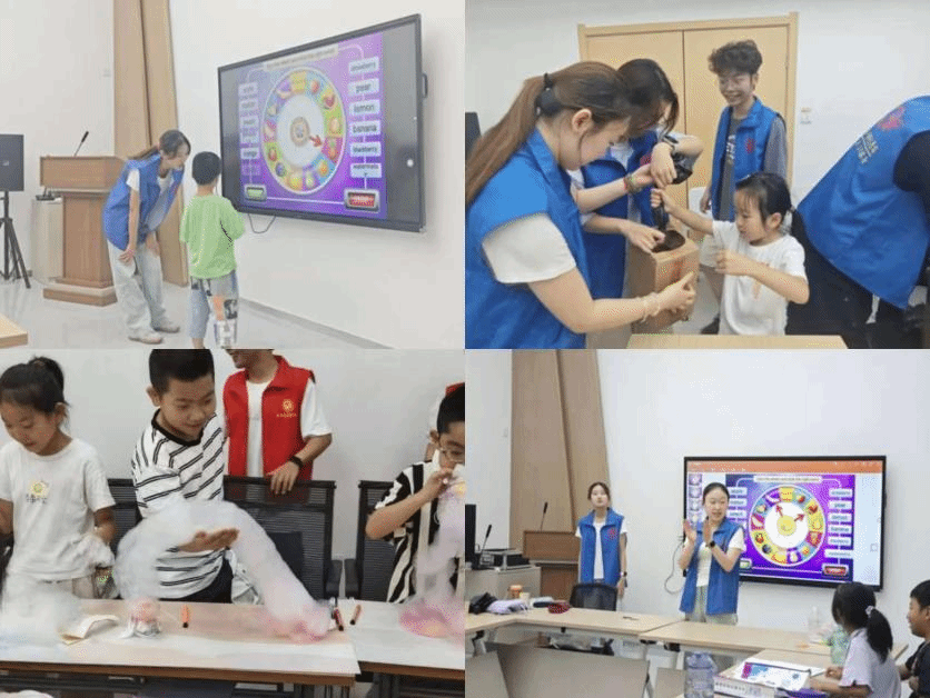 物理學(xué)院志愿者打造“趣味雙開課堂”,用紙杯與手電筒搭建“光影燈籠”,把“光沿直線傳播”等科學(xué)概念做成可觀察、可驗(yàn)證的小實(shí)驗(yàn);在“水果英語(yǔ)大轉(zhuǎn)盤”環(huán)節(jié),孩子們隨著指針轉(zhuǎn)動(dòng)說(shuō)出“apple”、“banana”,記憶過(guò)程被設(shè)計(jì)成“幸運(yùn)挑戰(zhàn)”,語(yǔ)言學(xué)習(xí)由此變得自然而有參與感。