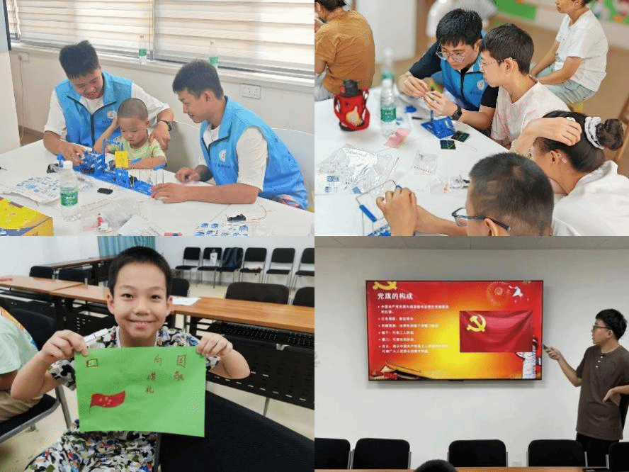 在社區(qū)黨員活動(dòng)中心,經(jīng)管學(xué)院的志愿者們用通俗易懂的語(yǔ)言講述“黨旗的故事”,引導(dǎo)孩子在動(dòng)手實(shí)踐中理解集體意識(shí)與責(zé)任感;屏幕上的黨旗與孩子們親手繪制的小國(guó)旗同框,簡(jiǎn)單真實(shí)的表達(dá)讓家國(guó)情懷在日常場(chǎng)景中落地。在新城區(qū)同德社區(qū),電控學(xué)院“繁星青年志愿者服務(wù)團(tuán)”為青少年開設(shè)趣味實(shí)驗(yàn)與動(dòng)手工坊,累計(jì)服務(wù)百余名兒童及其家庭,并將關(guān)懷延伸至入戶探訪老年群體,促進(jìn)代際交流與社區(qū)互助。