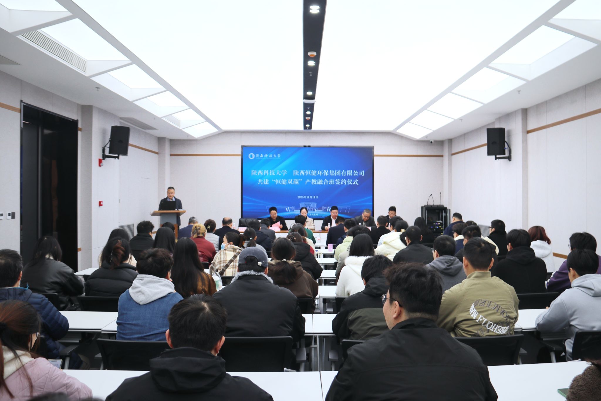 為貫徹落實(shí)學(xué)校第三次黨代會和七屆四次“雙代會”會議精神,持續(xù)深化教育教學(xué)改革、提升人才培養(yǎng)質(zhì)量,環(huán)境科學(xué)與工程學(xué)院(碳中和科學(xué)與技術(shù)學(xué)院)以產(chǎn)教融合驅(qū)動為抓手,深化校企協(xié)同育人機(jī)制,推動人才培養(yǎng)與產(chǎn)業(yè)需求精準(zhǔn)對接,學(xué)院與陜西恒健環(huán)保集團(tuán)本著“優(yōu)勢互補(bǔ)、資源共享、協(xié)同育人、互利共贏”原則,依托環(huán)境科學(xué)與工程專業(yè)共建“恒健雙碳”產(chǎn)教融合班,共同培養(yǎng)具備產(chǎn)業(yè)前沿技術(shù)能力、創(chuàng)新實(shí)踐能力和職業(yè)素養(yǎng)的高素質(zhì)應(yīng)用型人才,服務(wù)國家“雙碳”戰(zhàn)略和區(qū)域經(jīng)濟(jì)發(fā)展。