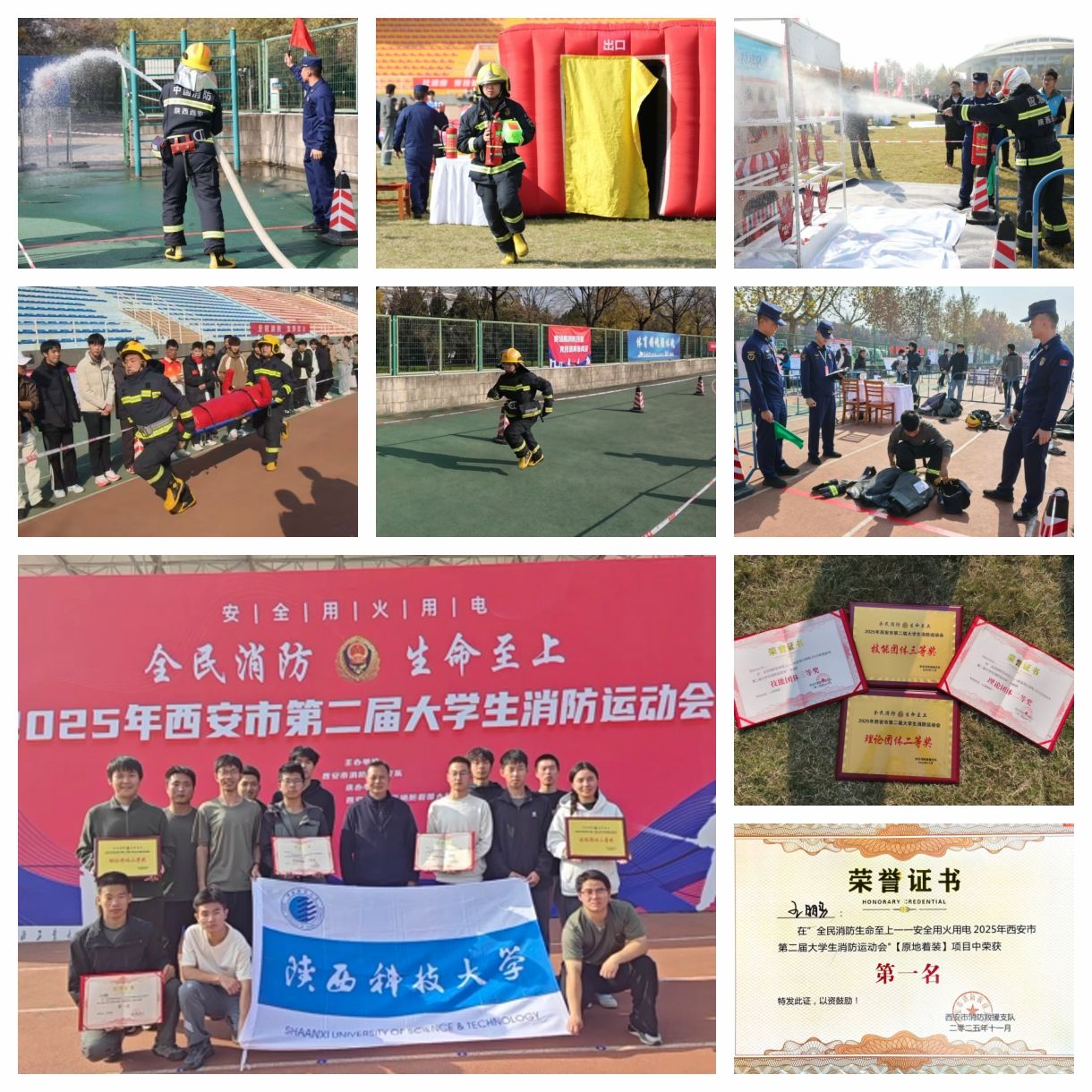 11月15日,西安市第二屆大學(xué)生消防運(yùn)動(dòng)會(huì)圓滿(mǎn)落幕。來(lái)自39所高校的500余名學(xué)子同臺(tái)競(jìng)技,我校代表隊(duì)?wèi){借扎實(shí)的理論功底和精湛的實(shí)操技能脫穎而出,斬獲消防理測(cè)試團(tuán)體二等獎(jiǎng)、消防技能比賽團(tuán)體三等獎(jiǎng)。