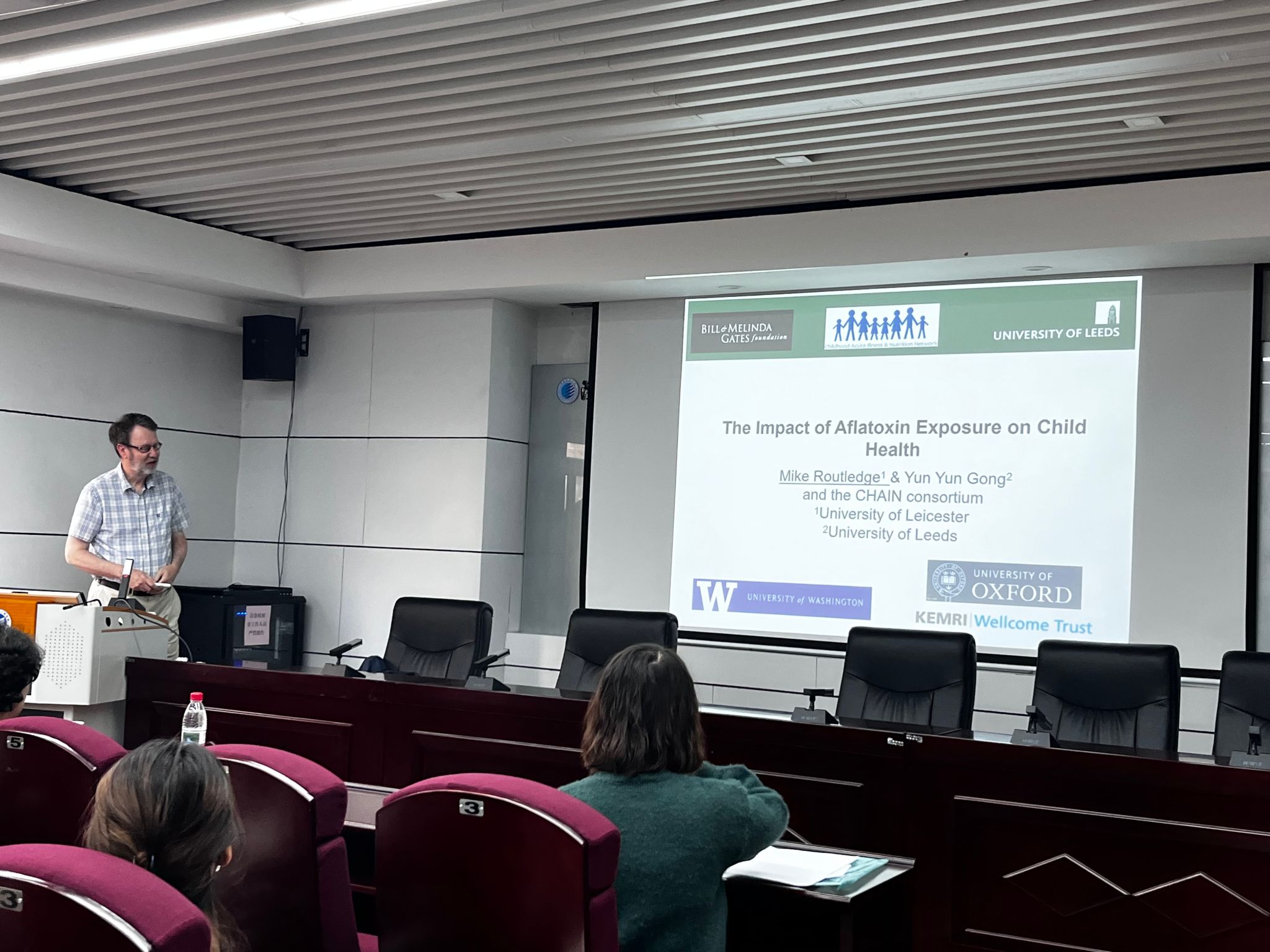 報告會上,Routledge副教授系統(tǒng)闡釋了黃曲霉毒素的健康危害機制。他首先從流行病學(xué)研究角度,通過詳實的數(shù)據(jù)和案例,分別闡述了急性和慢性黃曲霉毒素暴露對人體健康造成的不同影響。并重點介紹了當(dāng)前國際前沿的生物標(biāo)志物分析技術(shù),分享了其在非洲地區(qū)開展的大規(guī)模暴露評估研究成果。這些研究揭示了特定地區(qū)黃曲霉毒素暴露水平與嬰幼兒生長發(fā)育指標(biāo)間的關(guān)聯(lián)性,為深入理解真菌毒素對生命早期健康危害提供了重要證據(jù)。針對黃曲霉毒素的防控,Routledge副教授提出了一套涵蓋從田間到餐桌的全鏈條消減控制體系。他特別強調(diào),基于生物標(biāo)志物的精準(zhǔn)評估是實現(xiàn)有效干預(yù)的前提,并分享了在非洲地區(qū)實施的成功防控案例。